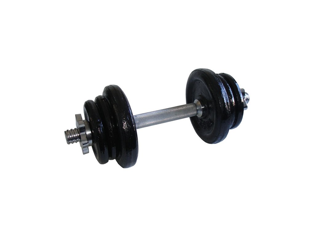 Nakládací činka jednoruční - 11 kg. Lakované kotouče, průměr chromované hřídele 25 nebo 30 mm. Možno specifikovat v požadavku. Základem je hřídel 370 mm, kotouče je možné volit . např. 2 x 2,5 kg + 4 x 1 kg.
