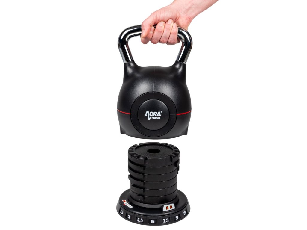 Kettlebell 7v1 Acra Fitness 1,5-10 kg – Vaše domácí posilovna v jednom kuse!Proč investovat do celé sady kettlebellů, když můžete mít vše v jednom? Náš nastavitelný kettlebell 7v1 Acra Fitness je revoluční řešení pro všechny, kteří chtějí cvičit doma, ale nemají dostatek místa. 7 vah v 1: Flexibilita tréninku: Přizpůsobte si zátěž podle svých cílů a úrovně zdatnosti. Ušetřete místo: Jeden kettlebell nahradí až 7 samostatných. Optimální progrese: Postupně zvyšujte zátěž a sledujte své pokroky. 7 hmotnostních stupňů: 1,5 kg, 3 kg, 4,5 kg, 6 kg, 7,5 kg, 9 kg, 10 kg. Kompaktní design: Snadné uskladnění: Zabere minimum místa ve vaší domácnosti. Přenosný: Vezměte si ho s sebou kamkoliv – na zahradu, na výlet nebo na dovolenou. Cvičte kdykoliv: Flexibilní tréninky: Není potřeba žádné speciální vybavení ani členství v posilovně. Úspora času: Cvičte, kdy vám to vyhovuje, bez nutnosti čekání na volné náčiní. Další výhody: Odolný materiál: Zaručuje dlouhou životnost. Pohodlný úchop: Minimalizuje riziko zranění. Vhodný pro všechny úrovně: Od začátečníků až po pokročilé. Tento výrobek je určen pro domácí a komerční použití. Investujte do svého zdraví a pohodlí! S Kettlebellem 7v1 Acra Fitness získáte osobního trenéra přímo u vás doma. Cvičení s kettlebellem – jednoduchý návod pro začátečníky Kettlebell je skvělým nástrojem pro funkční trénink celého těla. Je všestranný, kompaktní a umožňuje efektivní cvičení doma i venku. Ale jak začít? Základní cviky pro začátečníky: Swing: Základní a nejdůležitější cvik. Posiluje celé tělo, zejména zadní stranu stehen, hýždě a střed těla. Turkish Get-up: Komplexní cvik, který zapojí téměř všechny svaly těla. Zlepšuje stabilitu, koordinaci a sílu. Goblet Squat: Modifikovaný dřep s kettlebellem u hrudníku. Posiluje nohy, hýždě a jádro. Lunges: Výpady s kettlebellem. Cvičí dolní končetiny, zlepšují rovnováhu a koordinaci. Windmills: Rotační pohyb s kettlebellem nad hlavou. Zlepšuje mobilitu páteře a ramen. Jak na to:1. Správná technika: Je klíčová pro efektivní trénink a prevenci zranění. Na začátku se zaměřte na správnou techniku, i když budete cvičit s nízkou zátěží.2. Postupné zvyšování zátěže: Začínejte s nízkou hmotností kettlebellu a postupně zvyšujte, v tomto vám pomůže náš Kettelbell 7v1 Acra Fitness3. Pravidelnost: Cvičte pravidelně, ideálně 2-3krát týdně.4. Různorodost: Střídejte cviky, abyste zapojili všechny svalové skupiny a zabránili monotónnosti.5. Poslechněte své tělo: Pokud cítíte bolest, přestaňte cvičit a poraďte se s odborníkem. Tipy pro začátečníky: Najděte si kvalitní zdroj informací: Existuje mnoho videí a článků, které vám ukážou, jak správně cvičit s kettlebellem. Zvažte individuální trénink: Pokud jste úplný začátečník, může být individuální trénink s trenérem dobrou investicí. Začněte s jednoduchými cviky: Nepokoušejte se hned na začátku zvládnout složité kombinace. Buďte trpěliví: Výsledky nepřijdou přes noc. Důležité je pravidelné cvičení a správná technika. Bezpečnost především: Zahřejte se před tréninkem: Pár minut kardio cvičení a dynamického strečinku připraví vaše tělo na zátěž. Chraňte si záda: Při cvičení udržujte rovná záda a zapojte střed těla. Dýchejte správně: Vydechujte při námaze.Dodavatel: ACRA s.r.o., Brodská 161, Semily, 51301, 420481389087, obchod@acra.cz