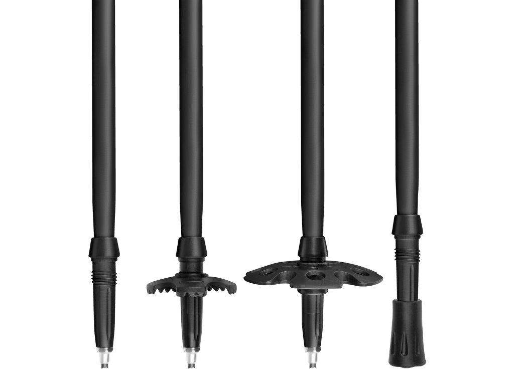 - Celoroční univerzálnost: Dva sety vyměnitelných talířků (letní i zimní) umožňují přizpůsobit hole jakémukoli ročnímu období a typu terénu.
